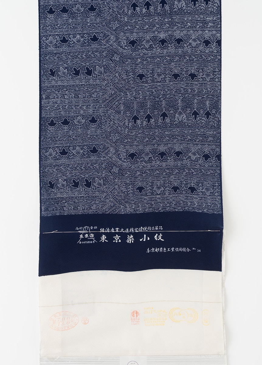 型紙を使用して染め上げた、正絹の東京染小紋です。