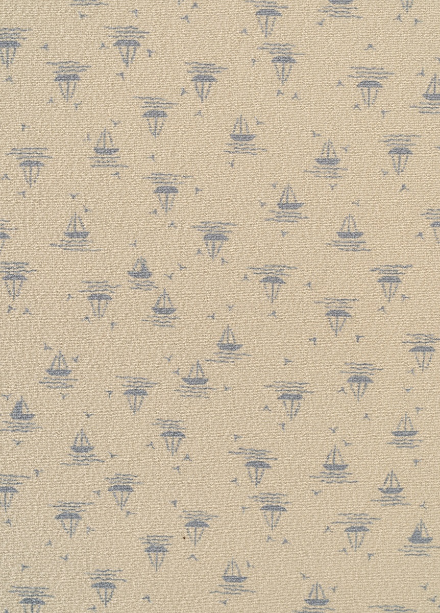 生地は丹後ちりめん。シワになりにくく、しなやかな風合いに優れている上、シボ(凹凸)の乱反射によって深みのある色を醸し出します。ヨットが散りばめられた遊び心のある一枚。日常に寄り添う大人の普段着として、名古屋帯や半幅帯でカジュアルな装いをお楽しみください。