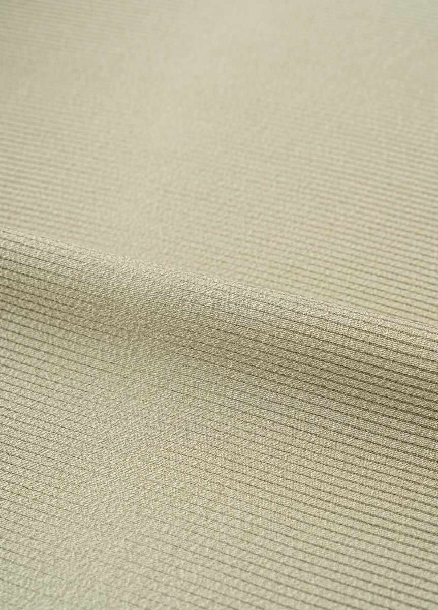 生地は丹後ちりめん。シワになりにくく、しなやかな風合いに優れている上、シボ(凹凸)の乱反射によって深みのある色を醸し出します。細かな横段にぼかしを加えることで、遠目で見るとそよかぜを想わせる美しい曲線が浮かび上がります。日常に寄り添う大人の普段着として、名古屋帯や半幅帯でカジュアルな装いをお楽しみください。