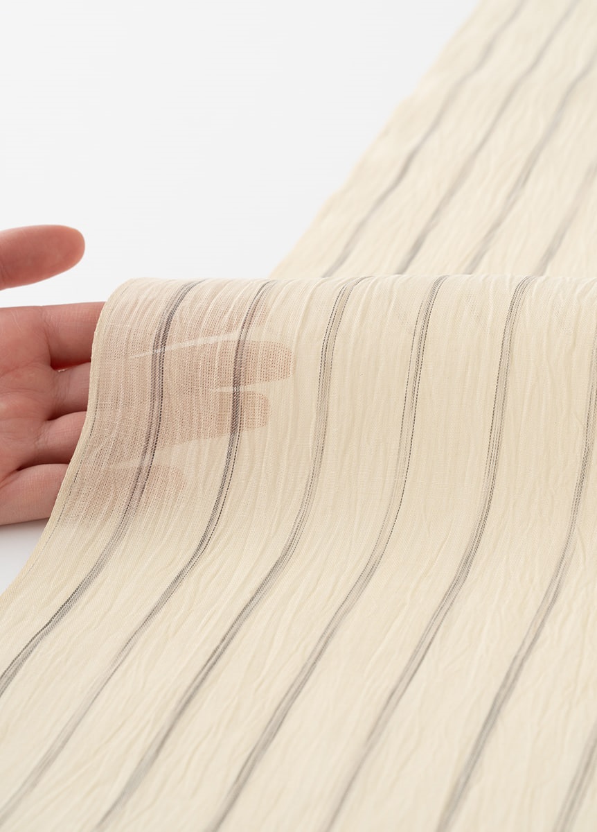 ・縮(ちぢみ)…緯糸に強い撚りをかけた糸を使って織り上げ、水につけることで糸が元に戻る性質で表面に細かなシボができます。
