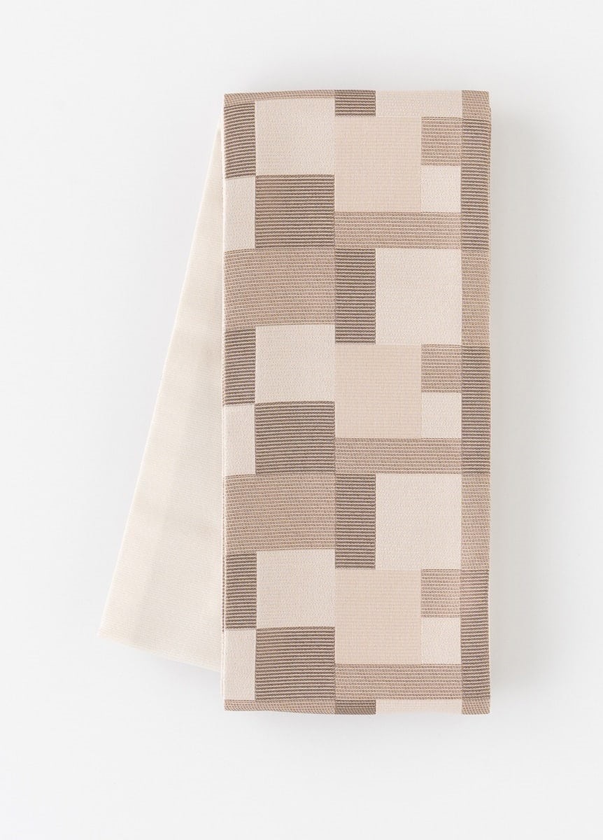 【半幅帯】きものやまとベーシック 合繊半幅帯 格子 ベージュ
