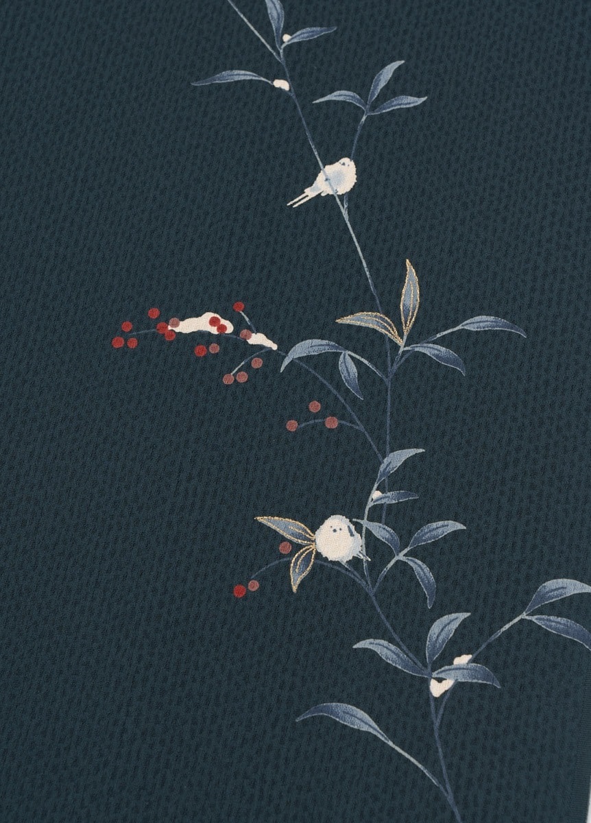 【きもの】やまと可憐 南天とシマエナガ 濃紺色