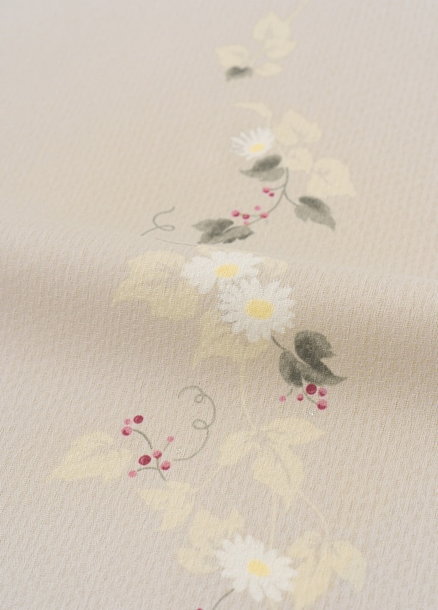 【きもの】やまと可憐 ノースポールとノブドウ 白鼠色