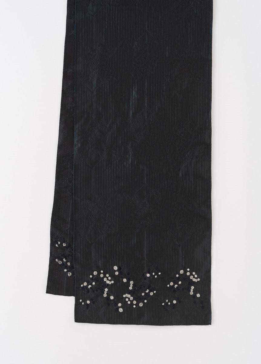 【へこ帯】桐生刺繍・かすみ草 濃紺
