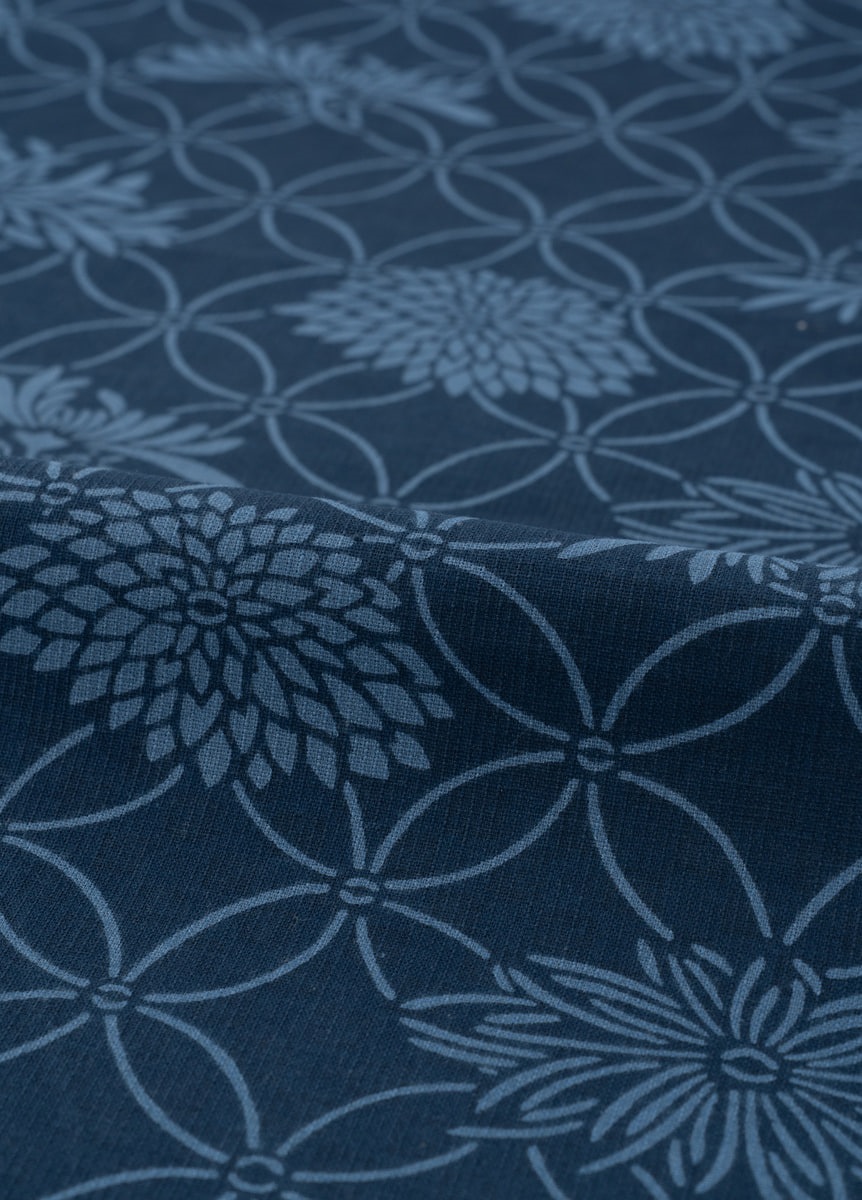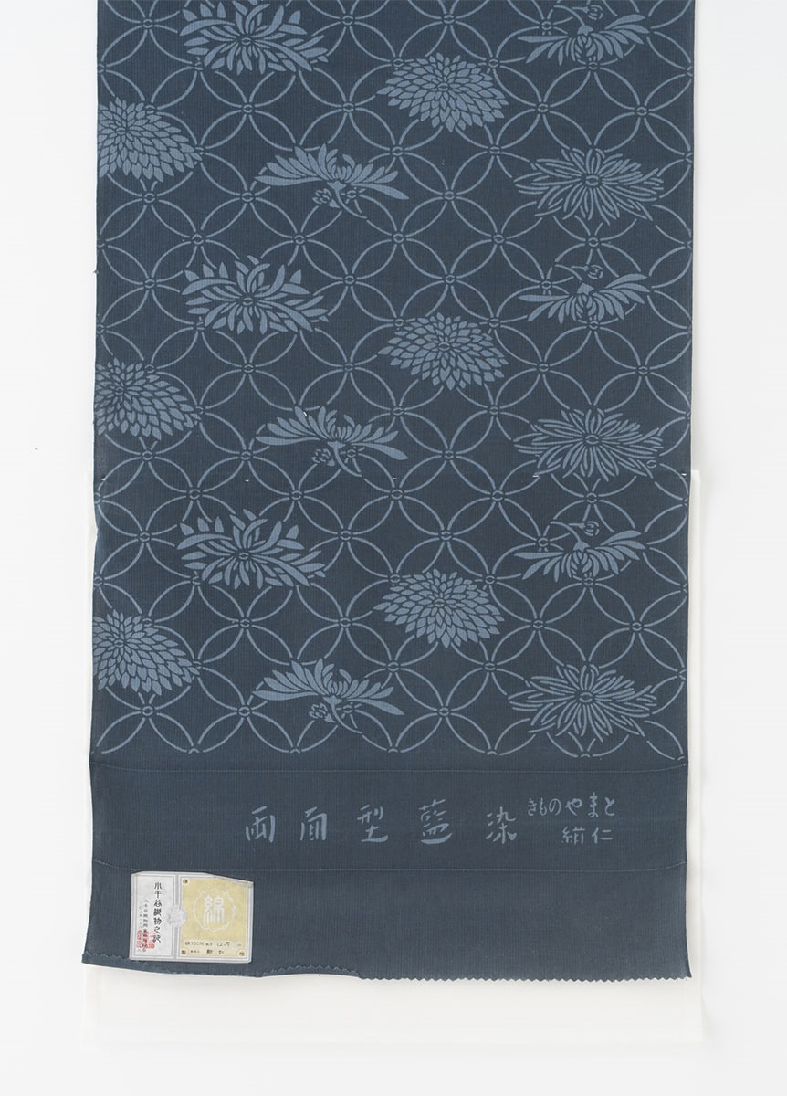 生地は260年以上の歴史を持つ紺仁工房で生まれ、太さの違う3種類の糸を独自の配列で織り上げた片貝木綿。「用の美」を背景に生まれ、「着心地の良さ」「しわになりにくく美しい着姿」「家で洗濯できる扱いやすさ」をかね備えた生地です。正絹に比べ、特別な日に限らず気軽に着ることができるので、気合を入れ過ぎず自然体でお召しいただけます。きちんと感を出すには名古屋帯、気軽に色々な結び方を楽しむには半幅帯がおすすめ。洋服が一般化した現在でも、特別な日常着として好印象を与えることができるでしょう。