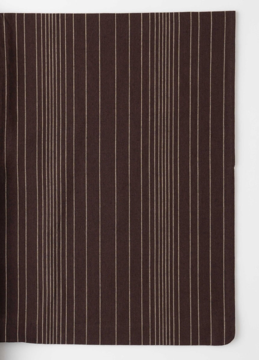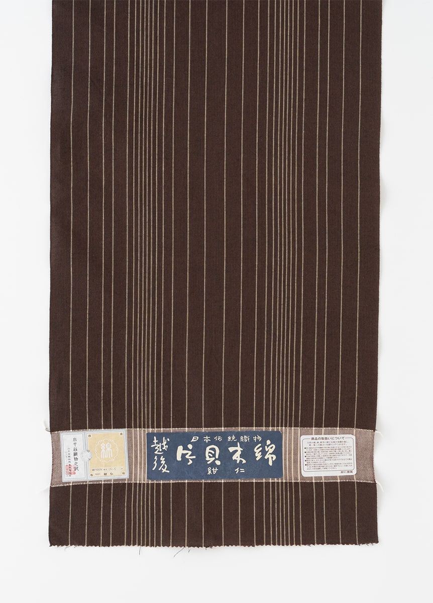 新潟県小千谷市の工房「紺仁工房」で織られた片貝木綿。太さの違う3種類のたて糸が規則的に並んでいるので、暑い時期でも肌に張りつきにくく、寒い時期には空気をはらんで暖かく着ることができます。生地の風合いはやわらかく、シワになっても戻りやすいので気軽に扱えるのも嬉しいポイント。