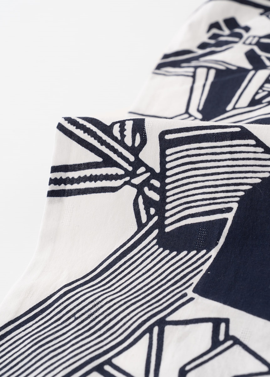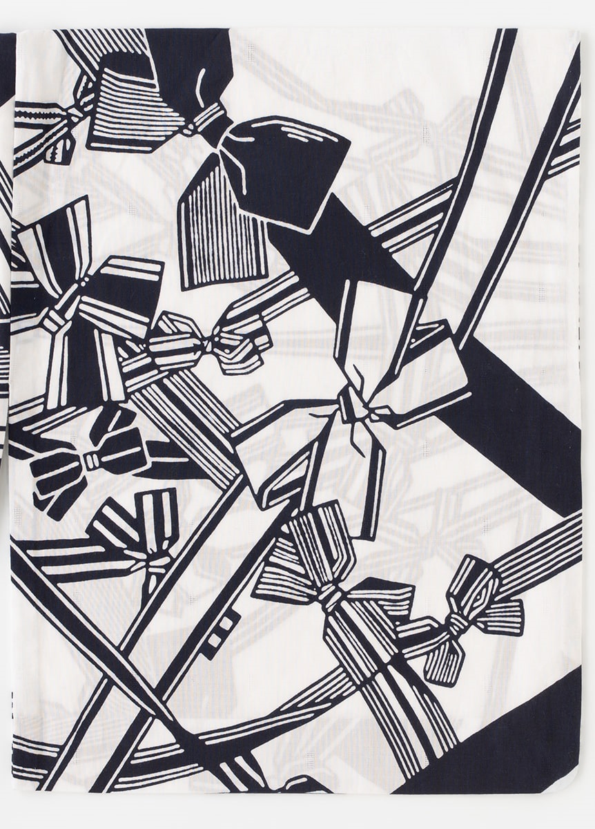 昭和30年代のはじめに中原淳一「それいゆ ゆかた」として発売され、人気を博したゆかたの復刻デザインです。生地を折りたたんで染めることで、繰り返し模様を表現する注染で表現しています。