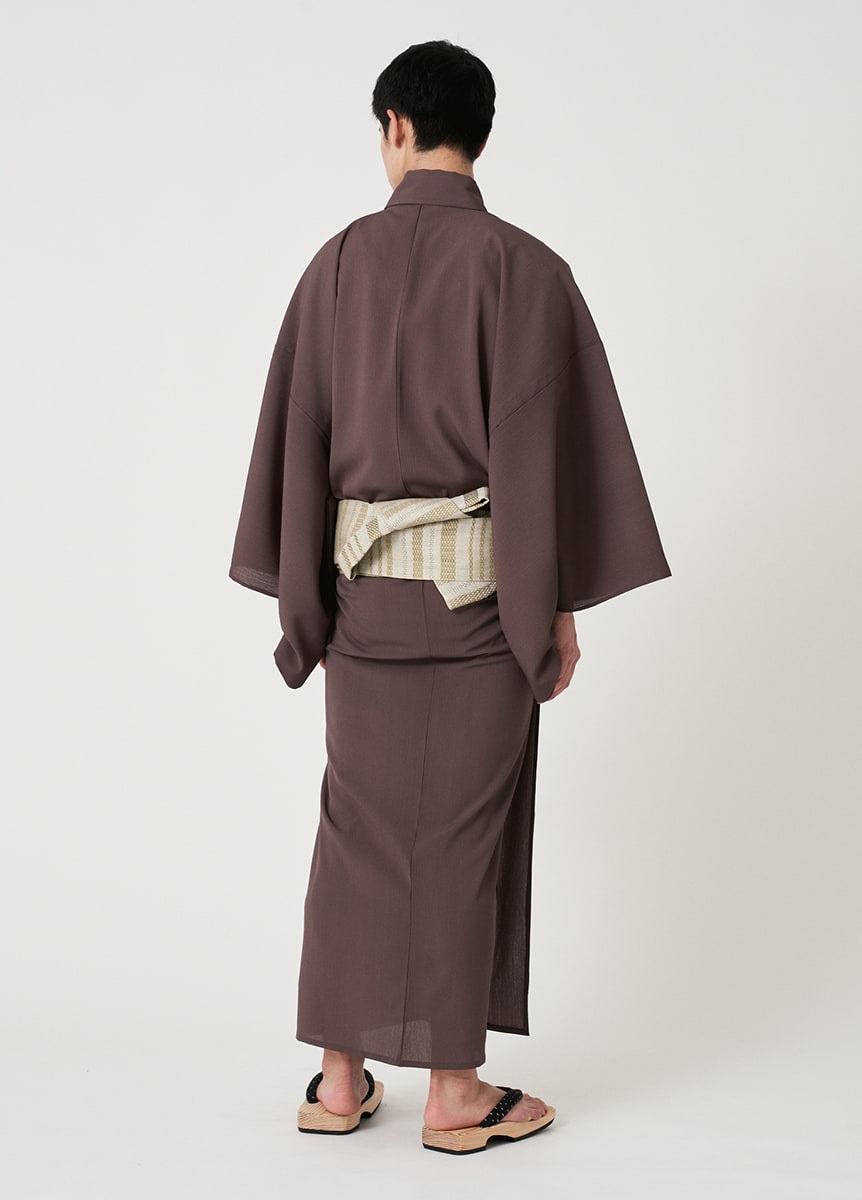 Product informationモデル着用「機能性 無地ゆかた 焦茶」
