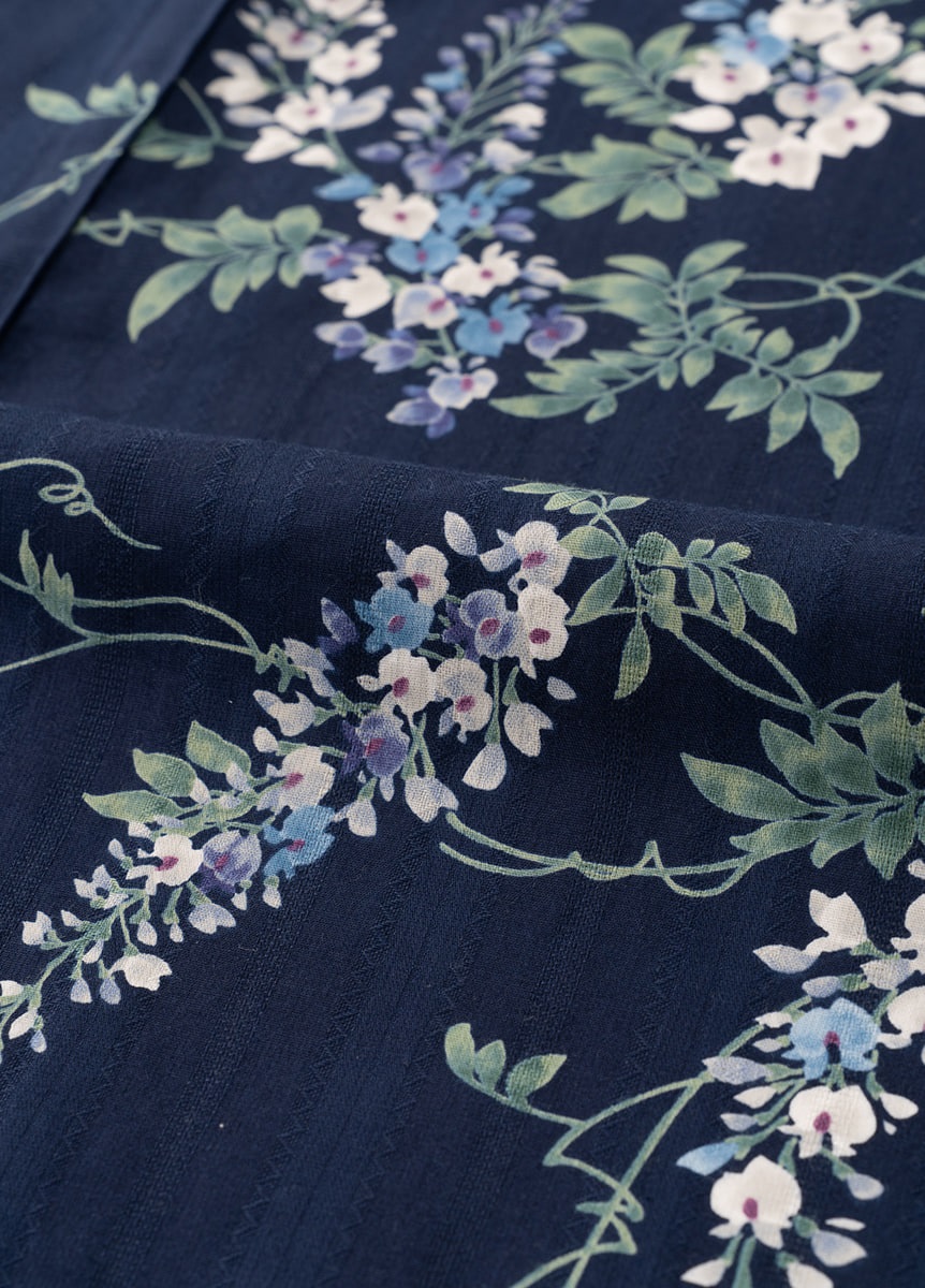 風花シリーズは、夏風に乗って草花が揺れ、花舞う様子から連想してデザインしています。華やかな草花柄を身に纏い、夏を彩り楽しんで欲しいという想いを込めて制作しました。