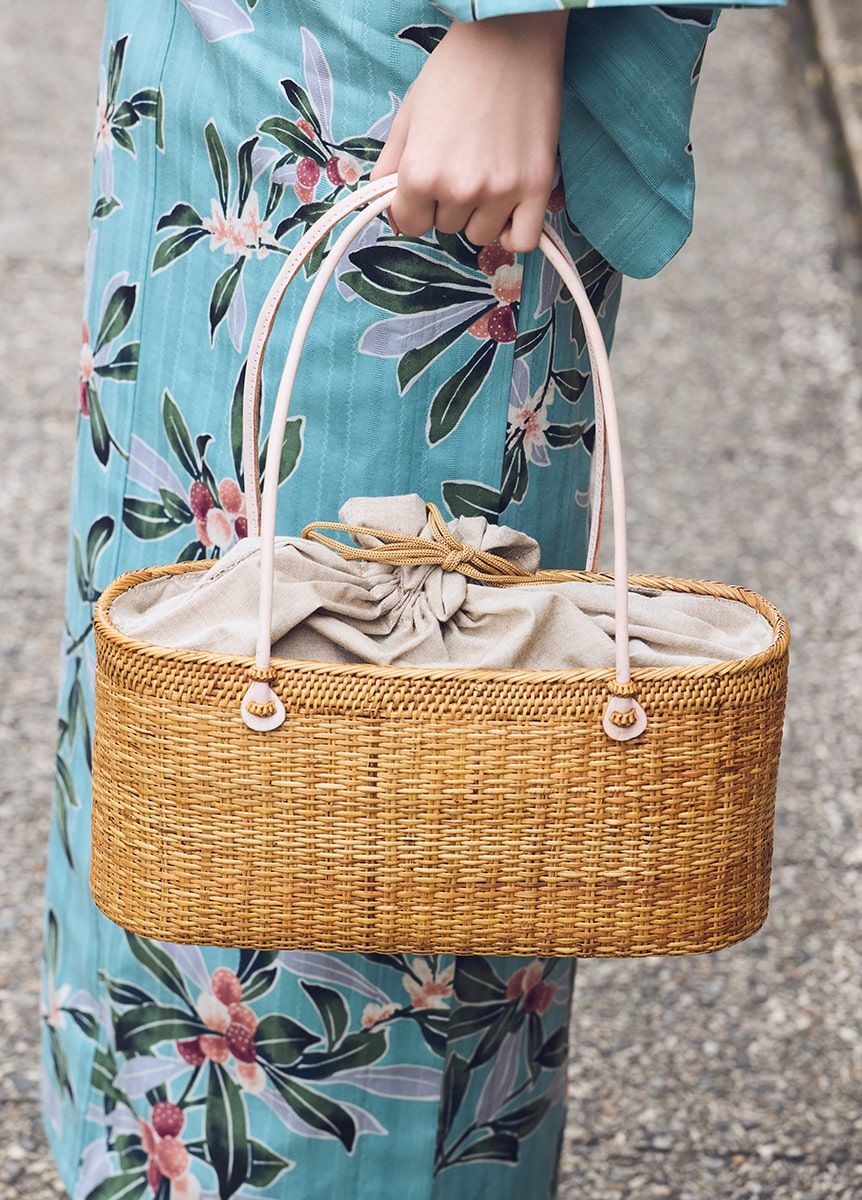 巾着付きで荷物がきちんと納まる実用的なバッグは、和装洋装どちらでもお楽しみいただけます。
