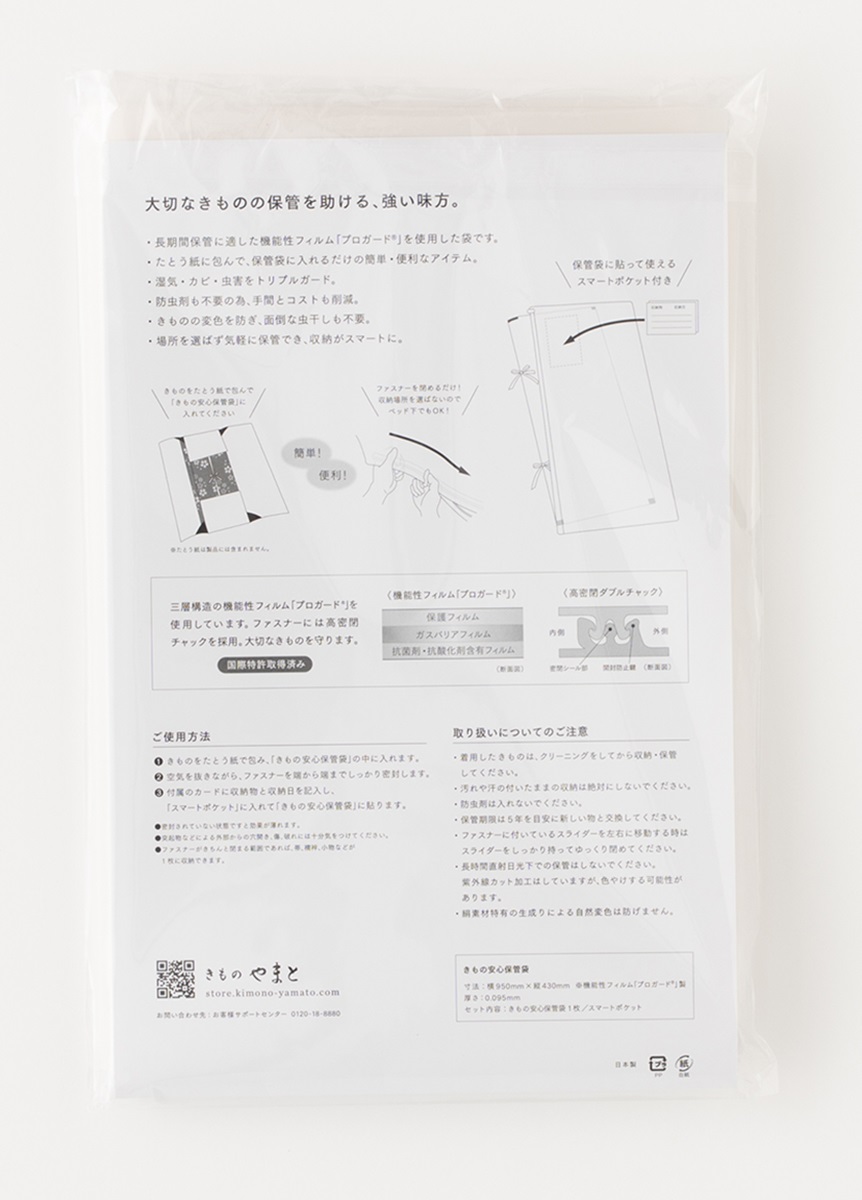 ① きものをたとう紙で包み、「きもの安心保管袋」の中に入れます。