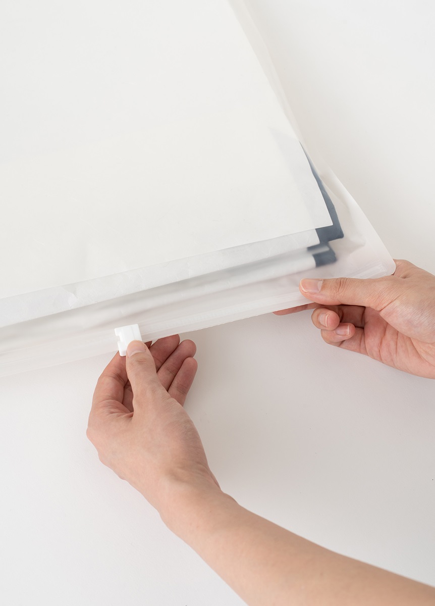 ② 空気を抜きながら、ファスナーを端から端までしっかり密封。