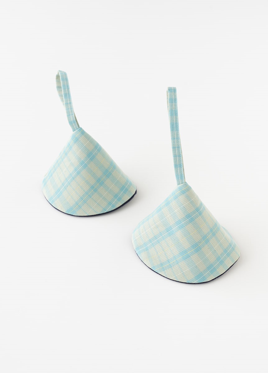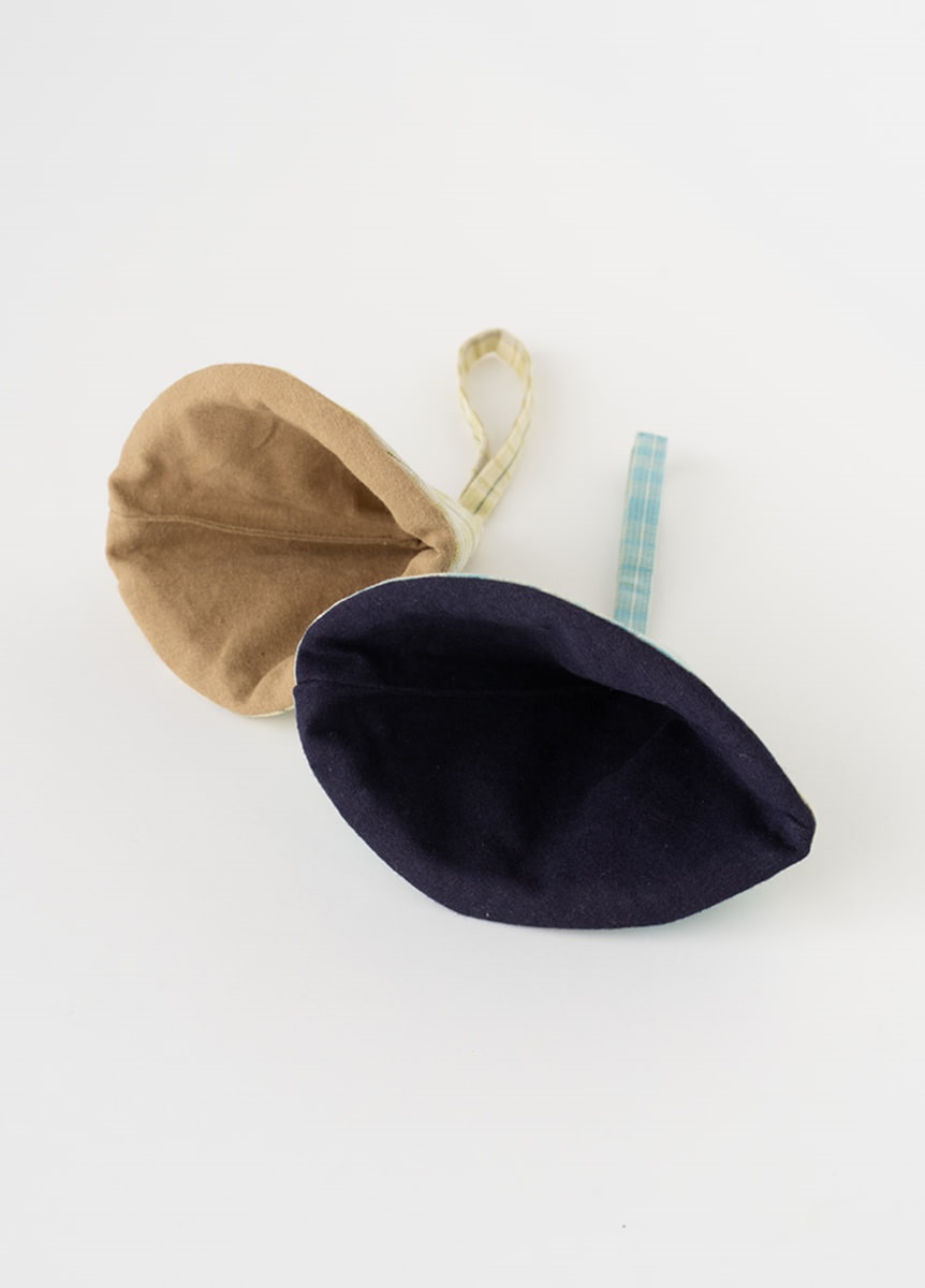 お持ちの布(仕立て後のあまり布)を使って加工する2個セットのなべつかみです。