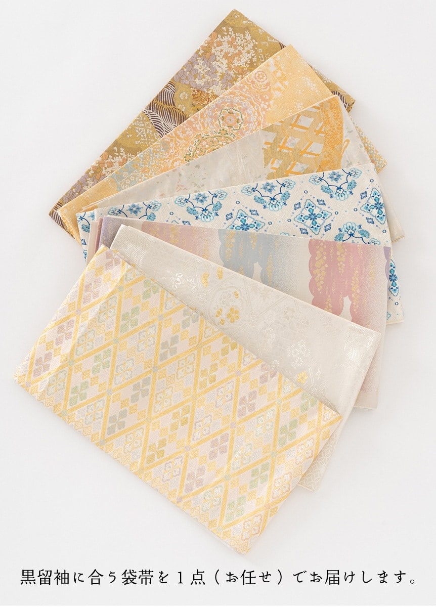 縁起の良い鶴と四季折々の花をデザインした豪華な黒留袖です。花々が描かれた丸紋は美しい月夜を連想させます。華やかな黒留袖をお探しの方におすすめです。