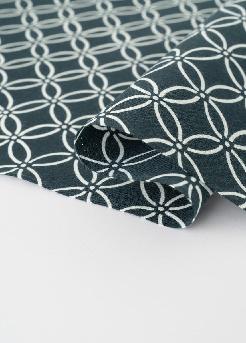 紺地に白の七宝柄というベーシックな柄付けです。シンプルなゆかたのため、帯や小物合わせをお楽しみいただけます。