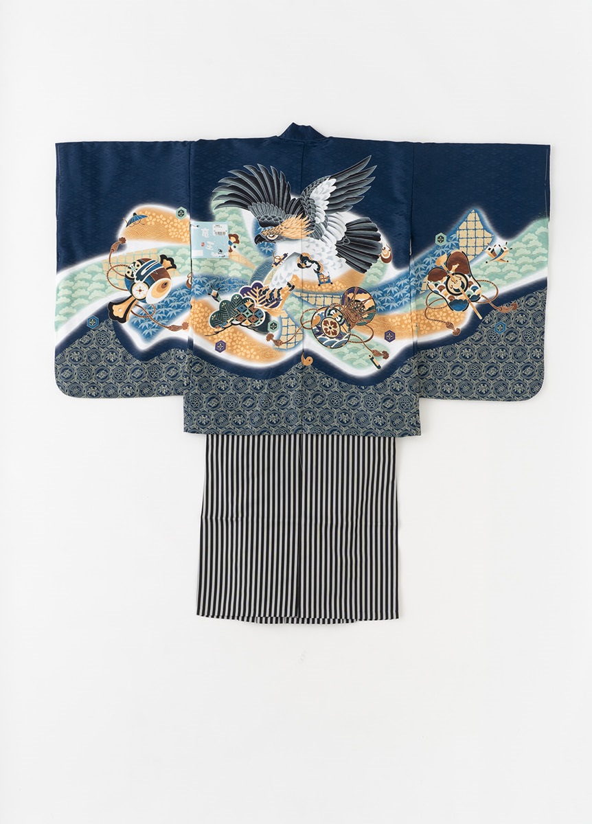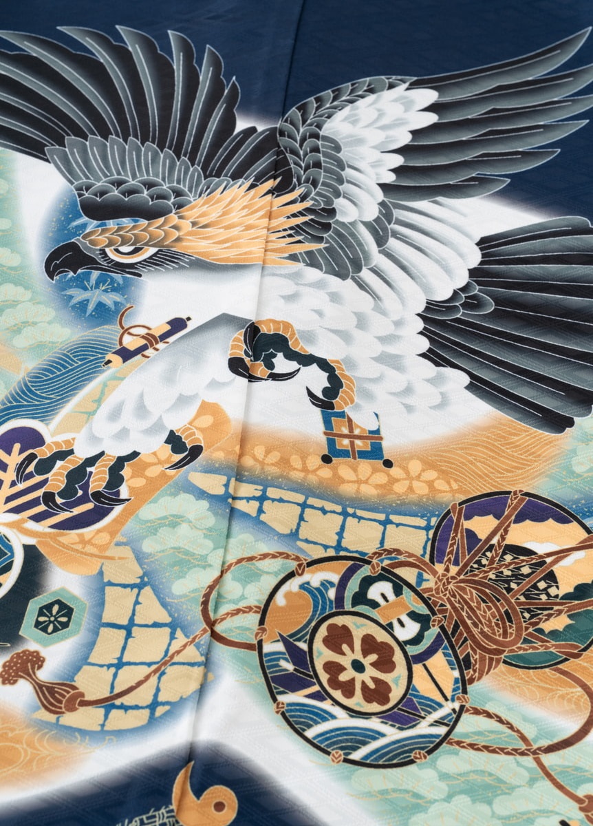 背に描かれた「鷹」の柄は、大空を舞う鷹の様に、勇壮で、賢く育って欲しいとの願いが込められています。