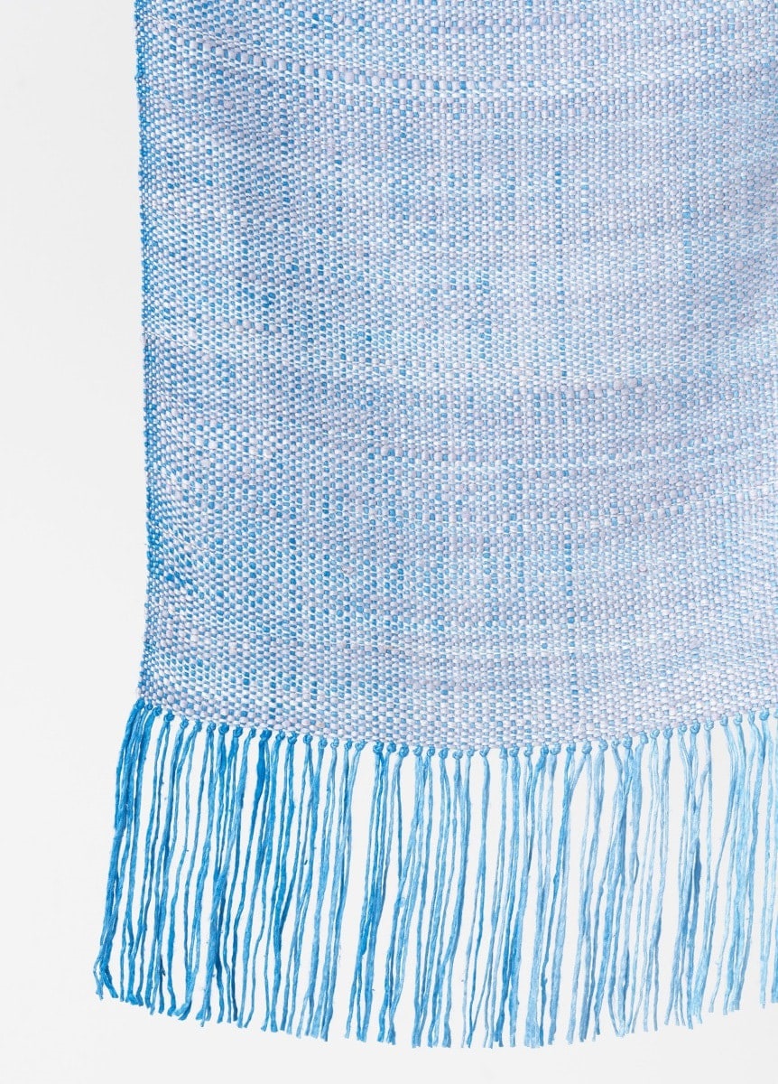 さわやかなグラデーションが美しく、訪問着などフォーマルな装いにもおすすめ。フリンジ部分のアクアブルーがアクセントになります。
