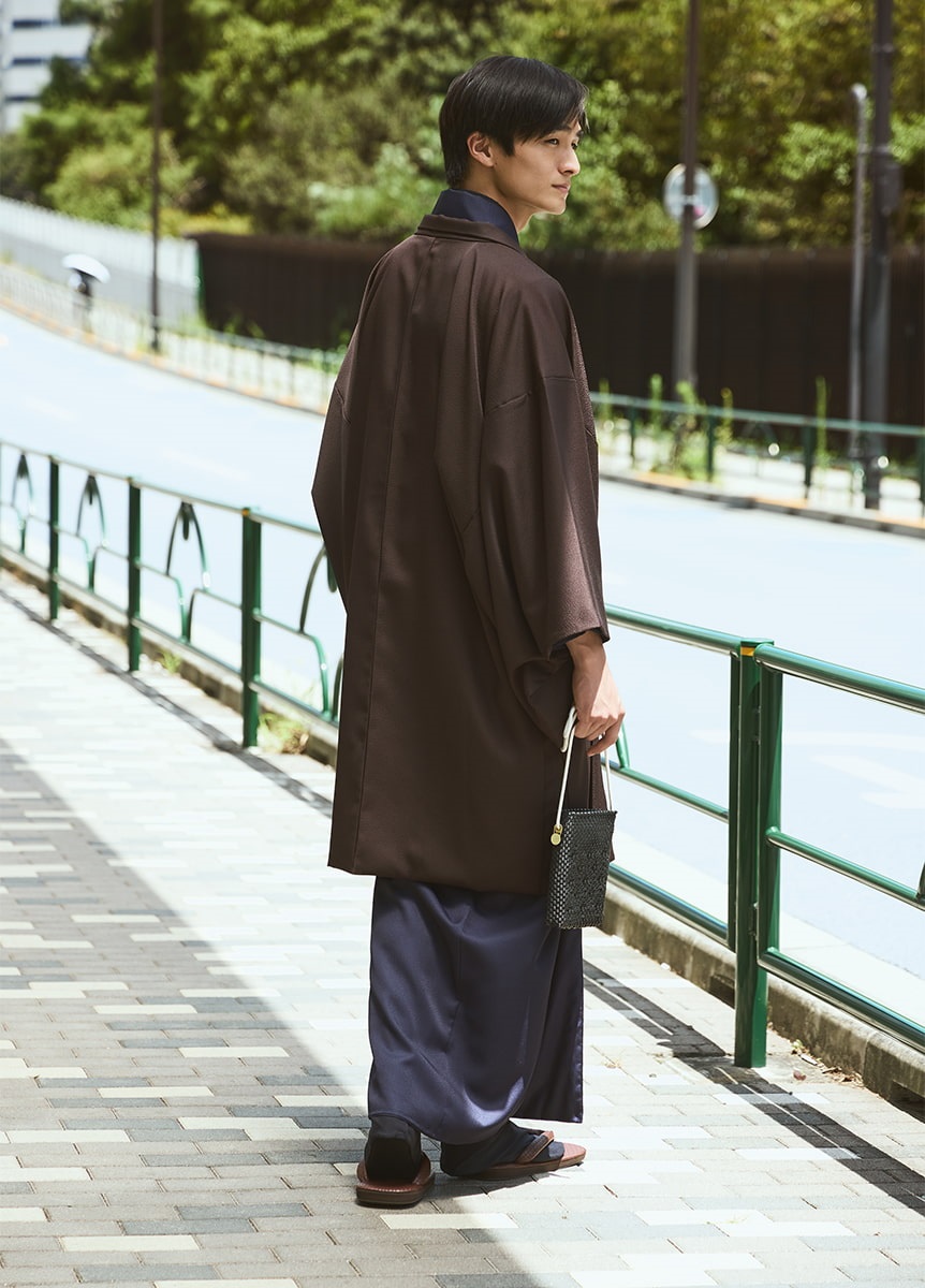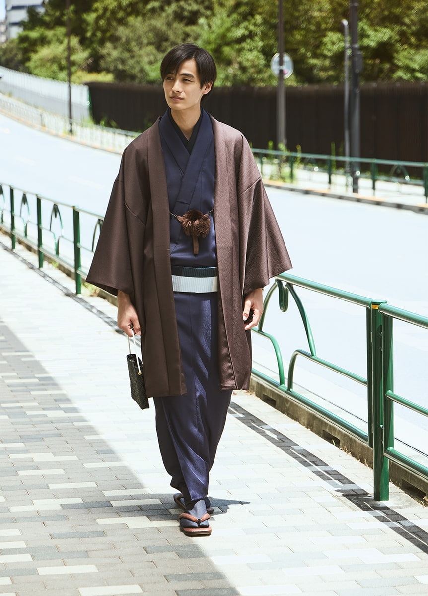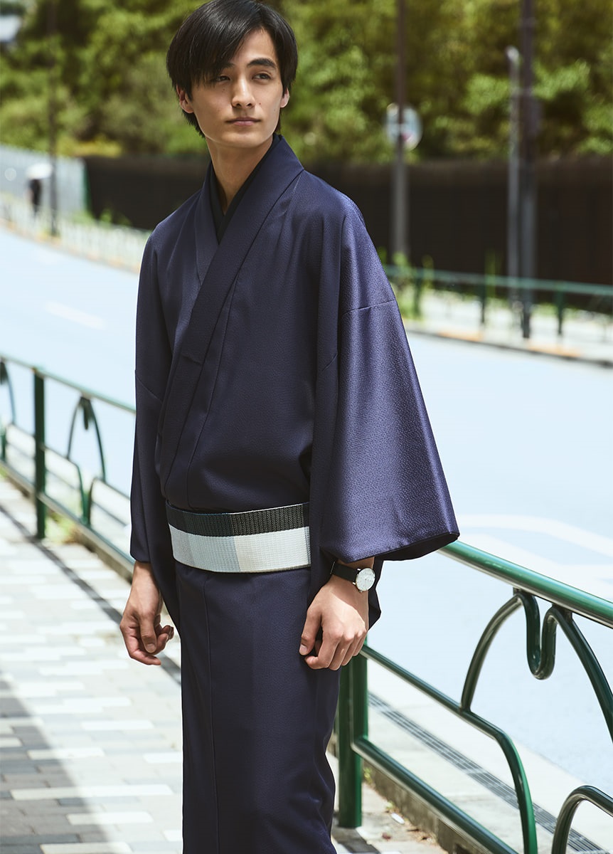 爽やかさも纏った濃紺色は、着回ししやすく、スーツ感覚でお召しいただけるため、はじめてのきものにもおすすめです。