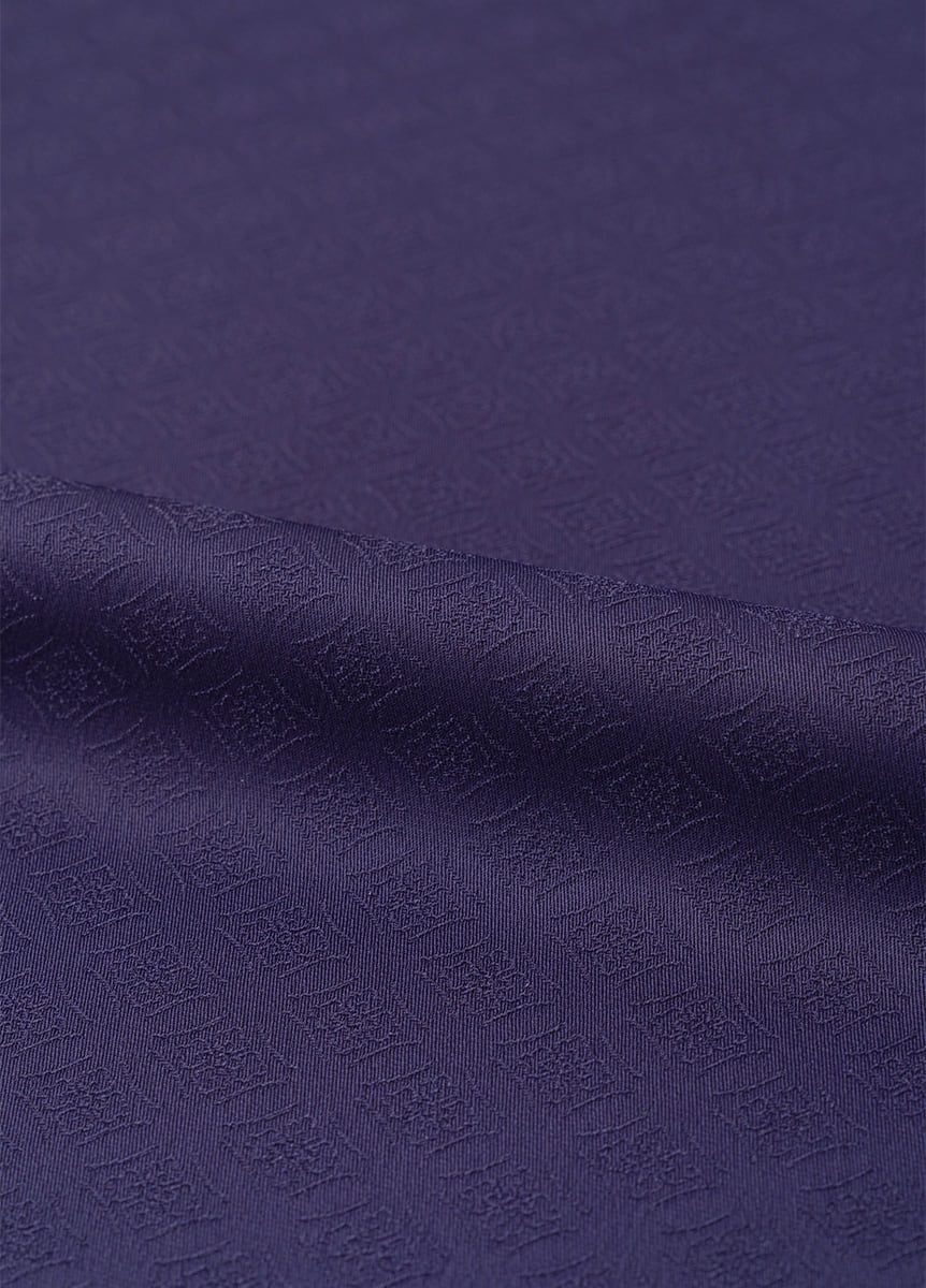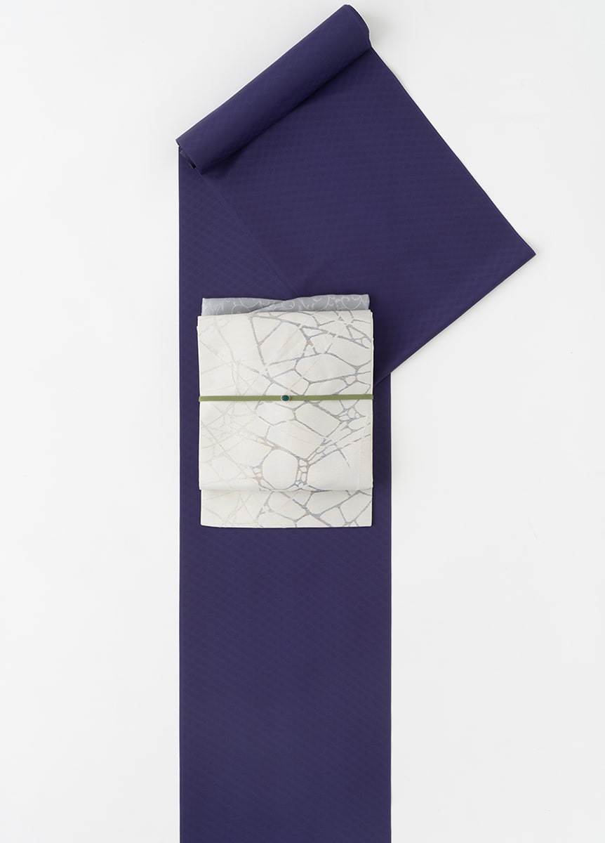 紫みのある鉄紺色は、落ち着きがありながら華やかな印象に。地紋には有職文様である七宝を織り上げました。シンプルな色無地は、帯や小物合わせで着回しが自由自在。金銀糸の袋帯でドレスアップや、大柄の名古屋帯で遊びのある着こなしまで、様々なシチュエーションで活躍します。裏地付きの袷仕立てですので、夏以外の3シーズンでお召しいただけます。八掛の色は、きものと同系色のお任せとなります。