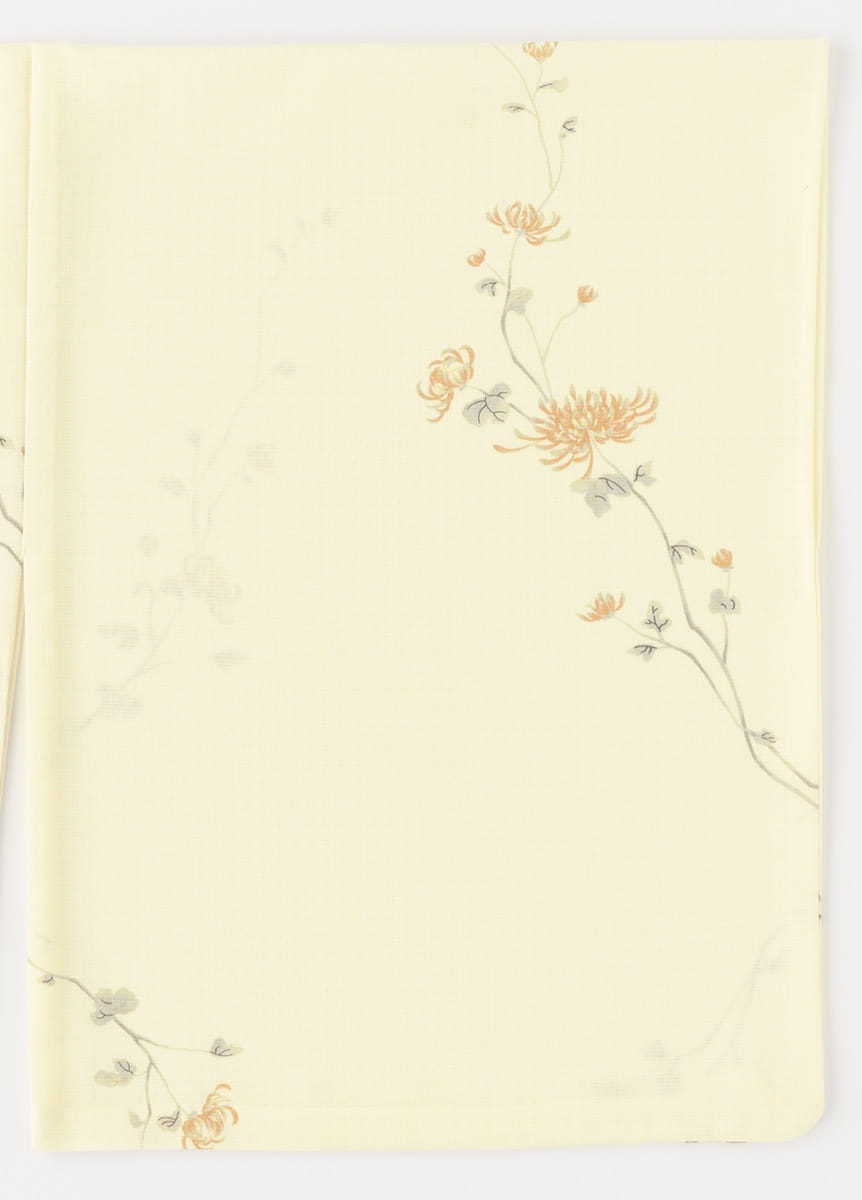 夏に花咲く、早咲きの菊を総称した、夏菊。日本人に昔から愛されて、日常にも馴染みのある花を描きました。爽やかで清涼感を感じられるよう、水彩調に描きました。縦にスッと咲く姿がまるで背筋を伸ばしてくれるような、前向きな気持ちにしてくれます。