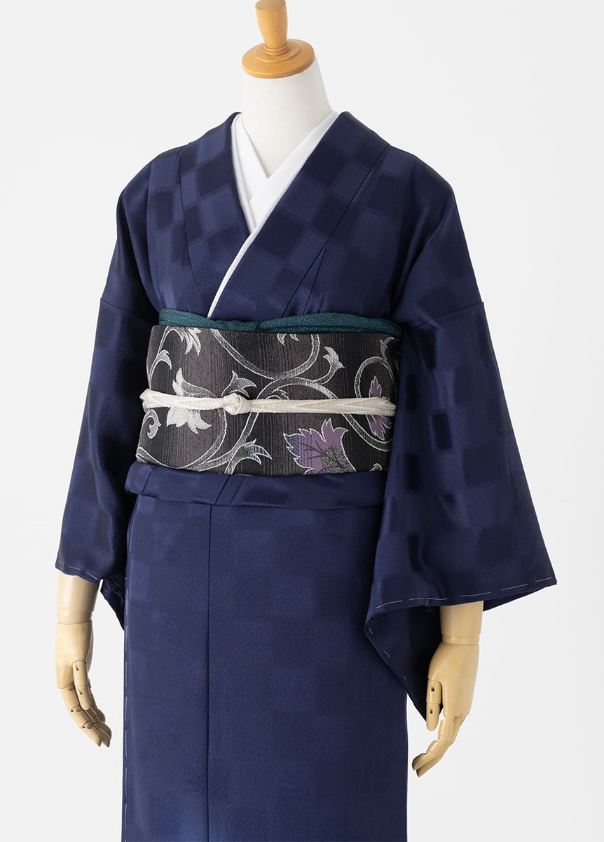 市松に織られた生地の光沢が美しい訪問着です。柄の少ない、控えめな訪問着をお探しの方におすすめです。