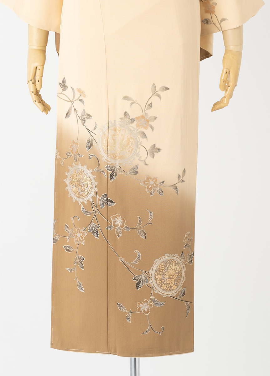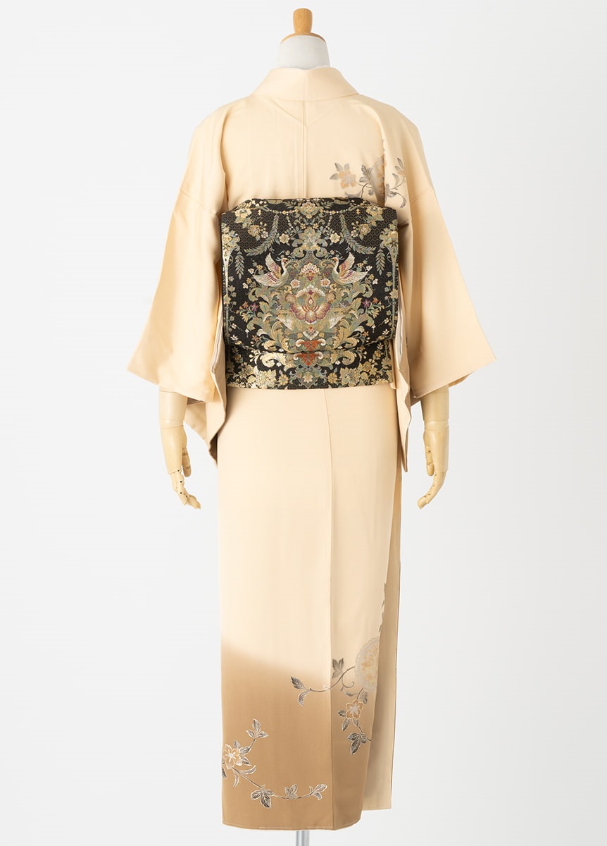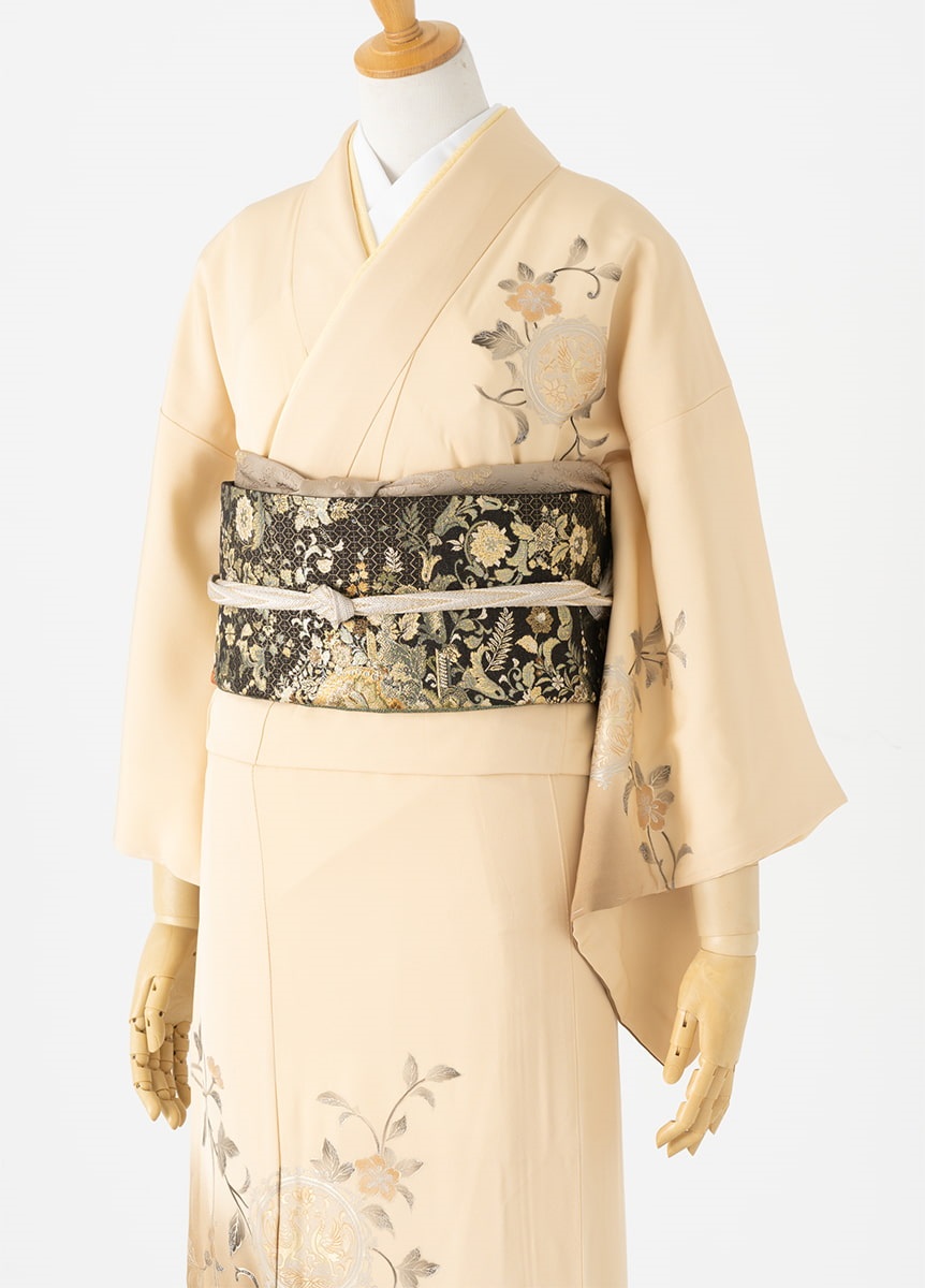 素材:【訪問着】正絹 【帯・小物】絹、ポリエステル、一部金属糸使用 【長襦袢】身頃/綿100% 裾・袖/ポリエステル100%